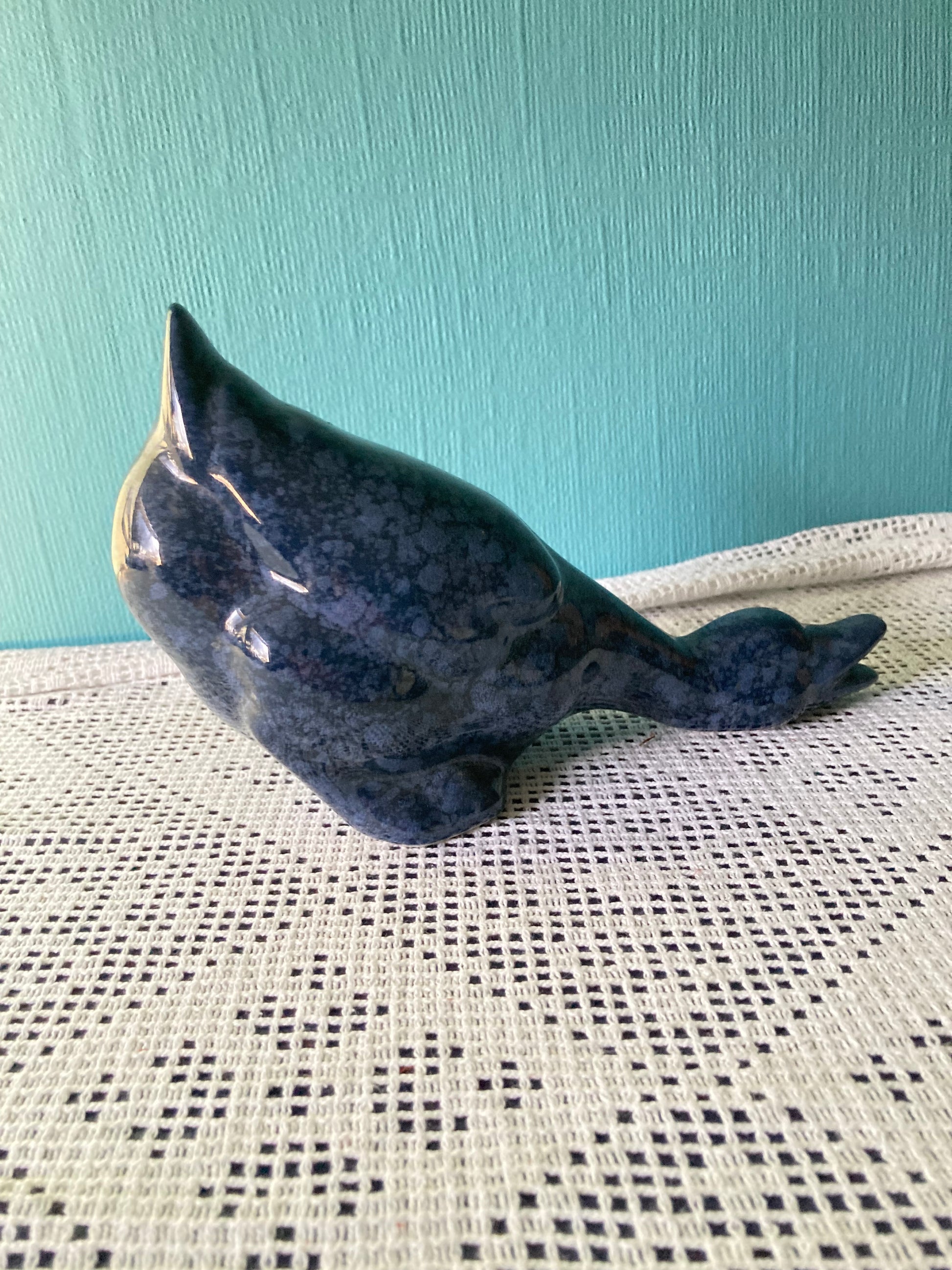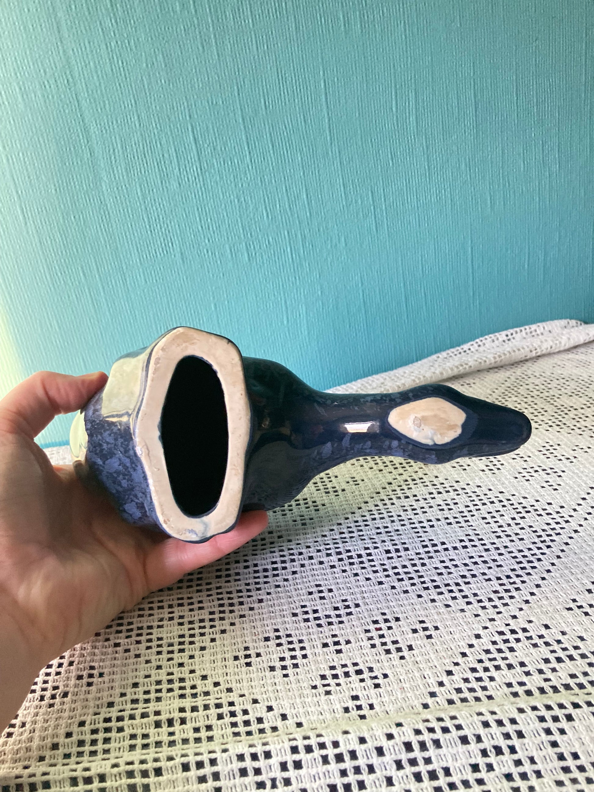 Add a touch of charm to your home decor with our Blue Speckled Ceramic Goose Ornament.