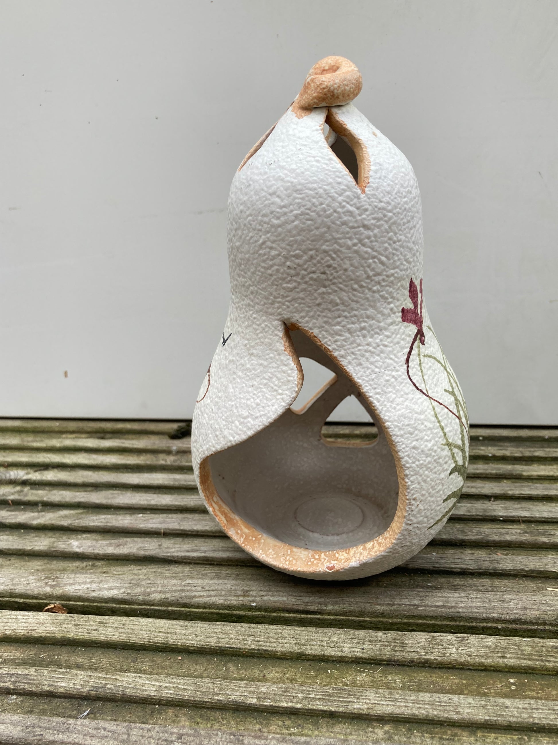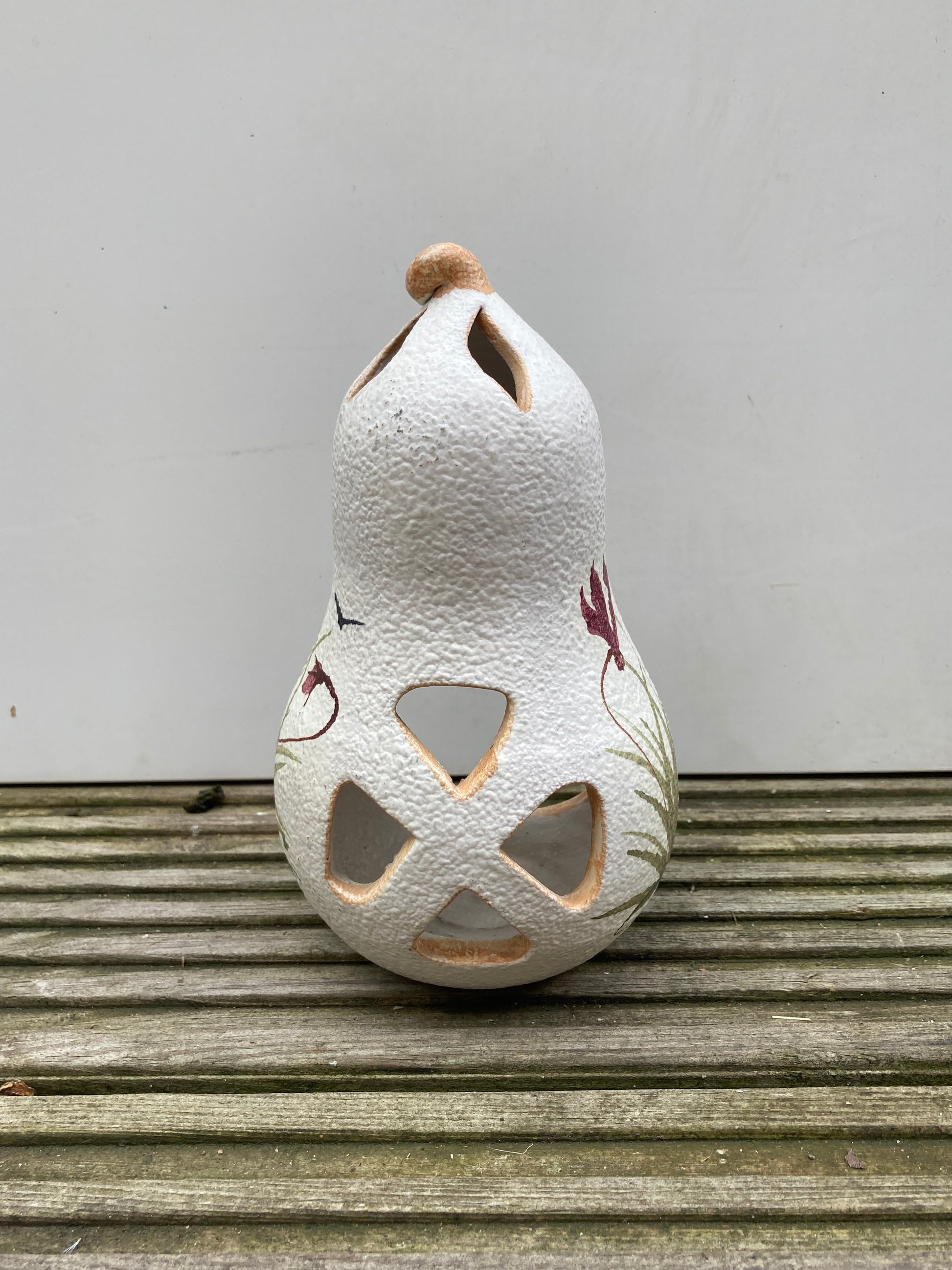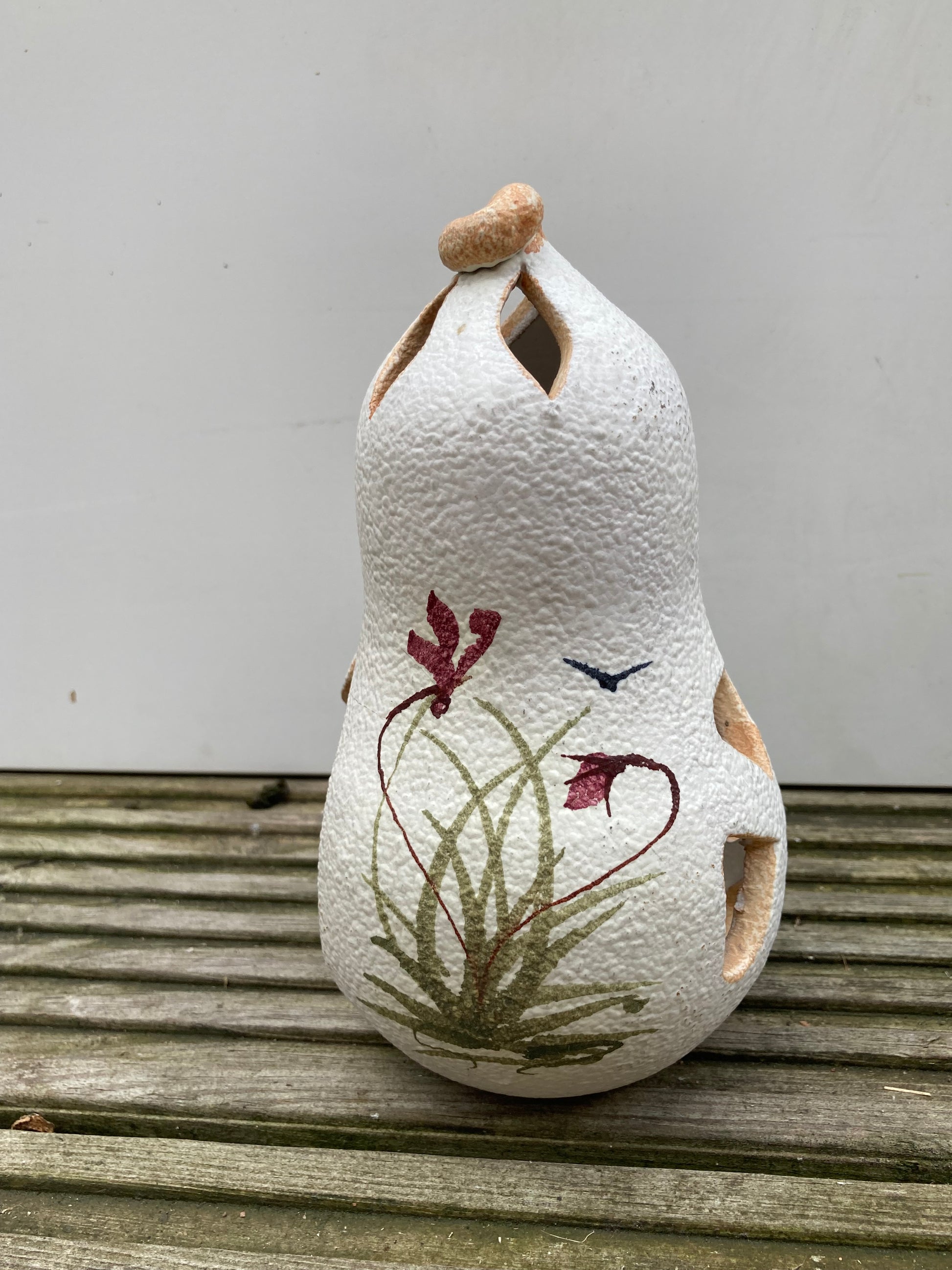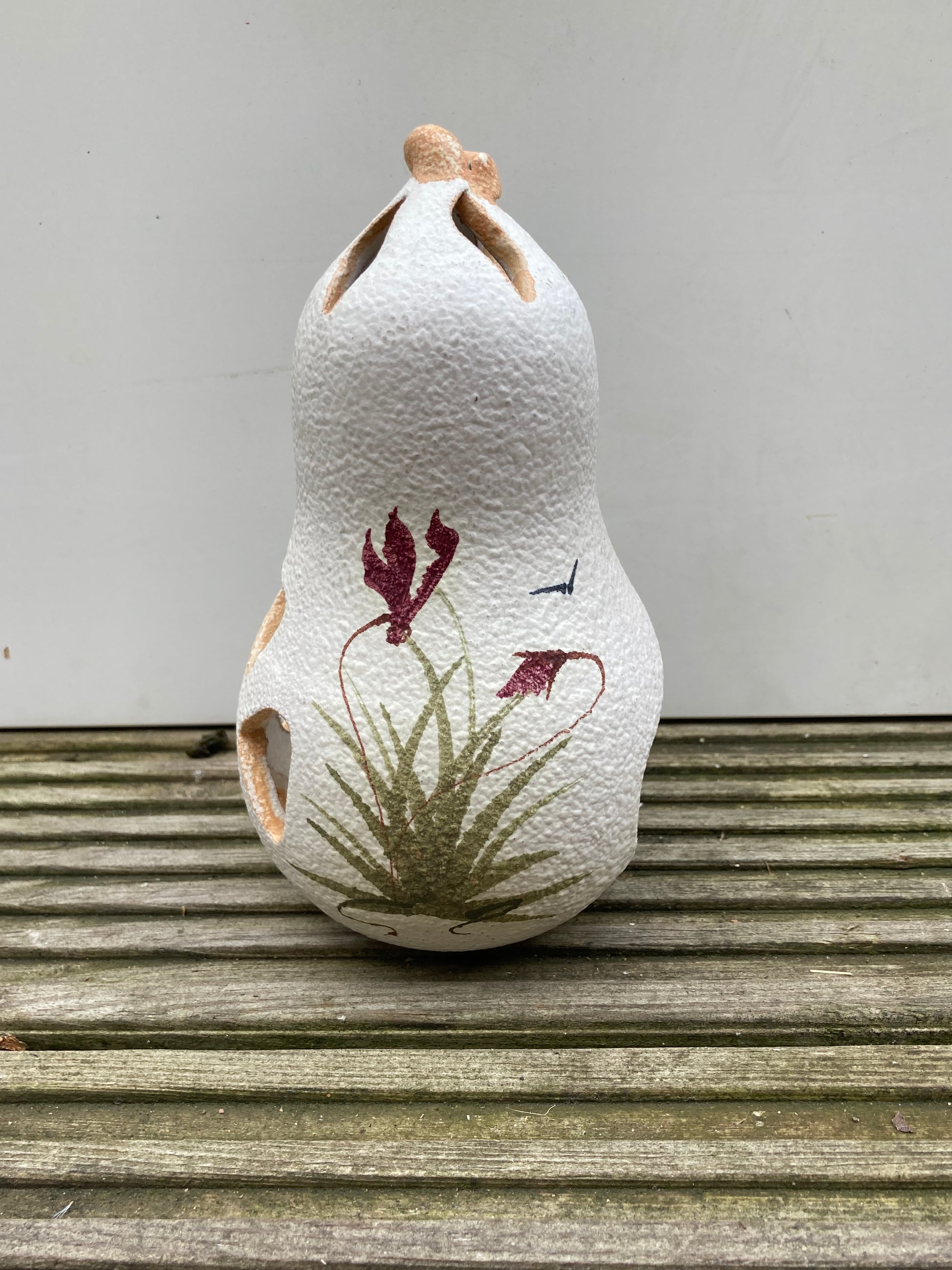 The ceramic gourd vessel provides authentic character and warmth, whilst the delicate botanical motifs add sophisticated visual interest to any interior.