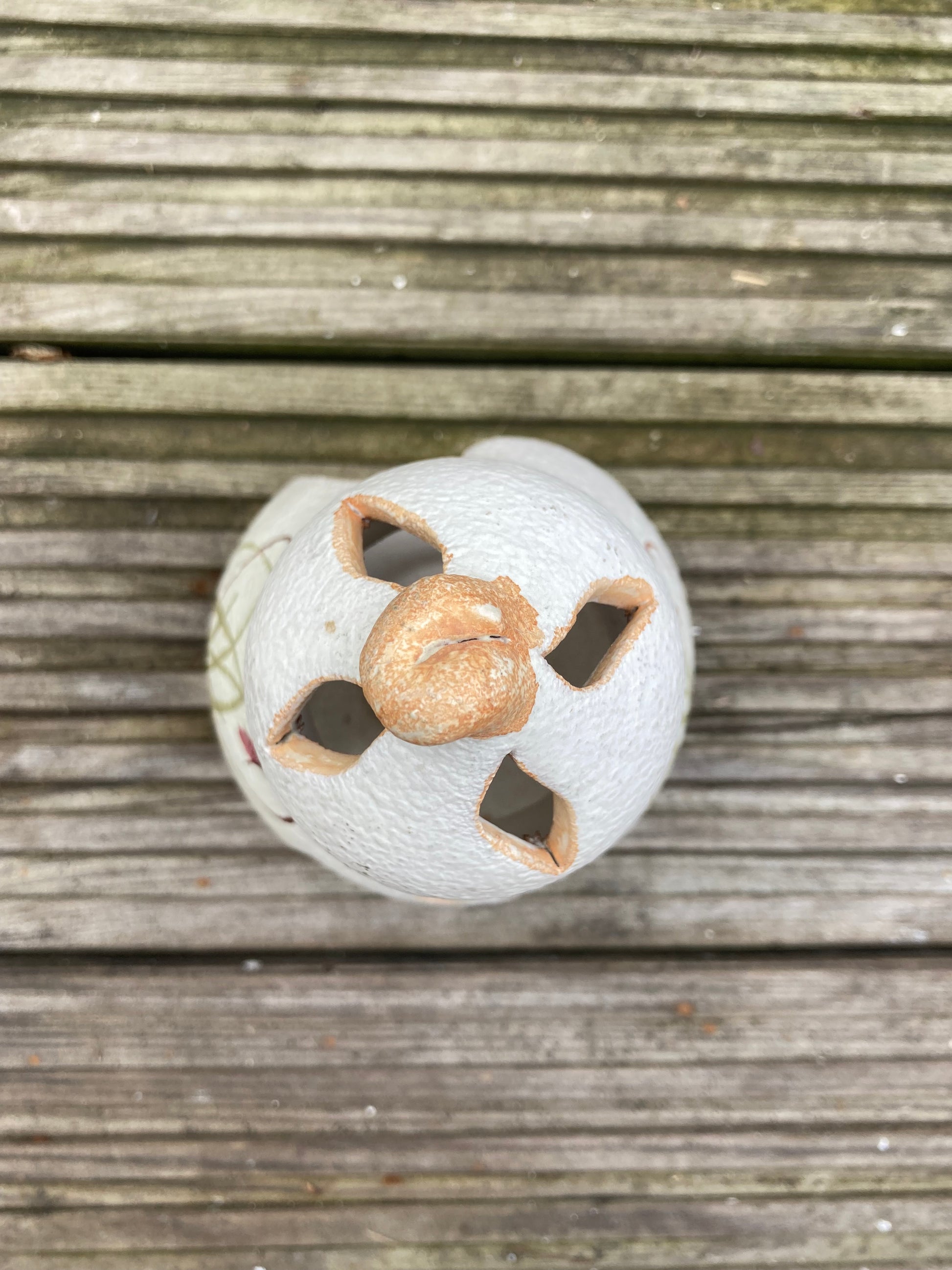 Kontos Cyprus Carved Gourd Candle Holder Floral Pattern