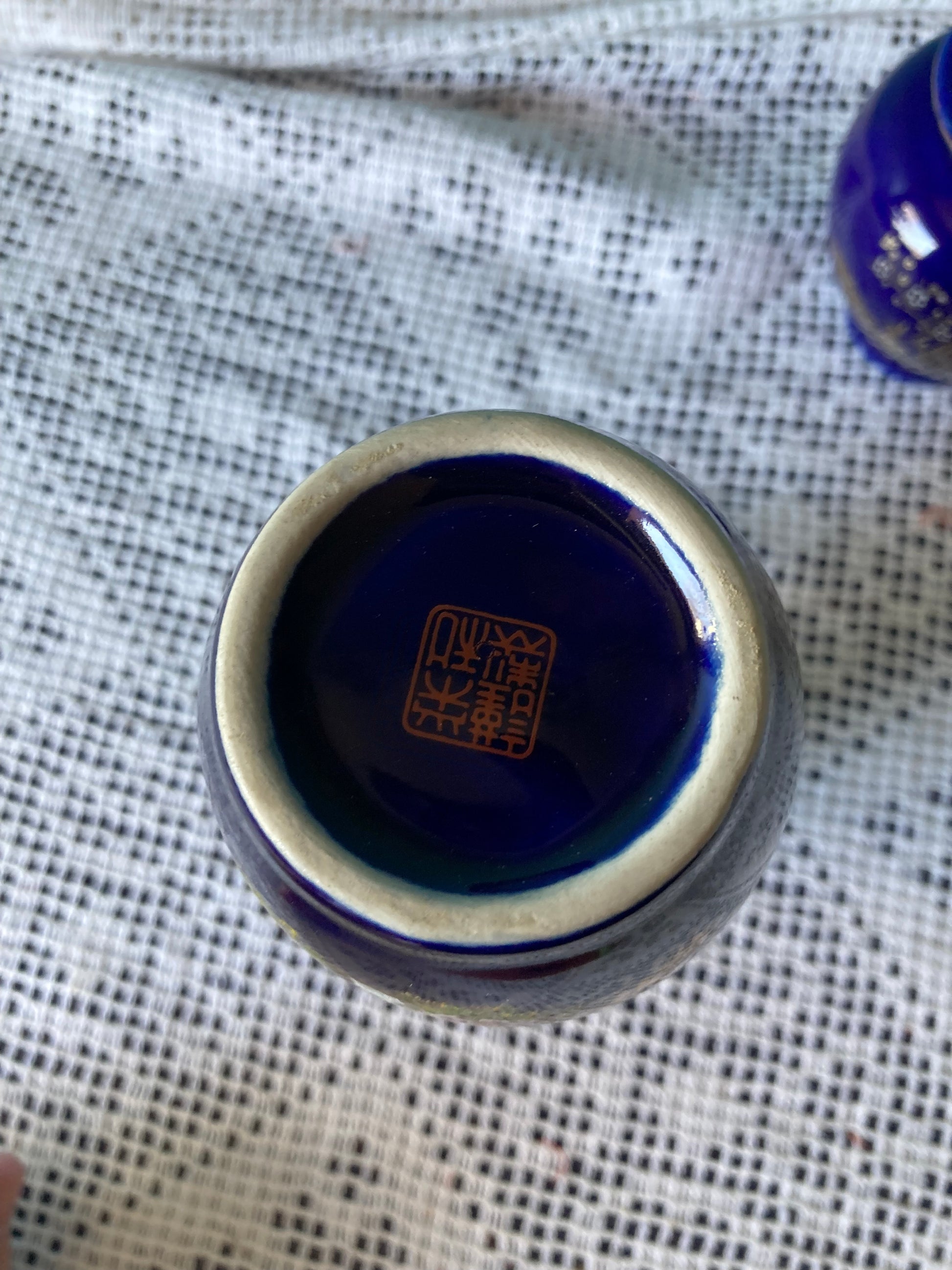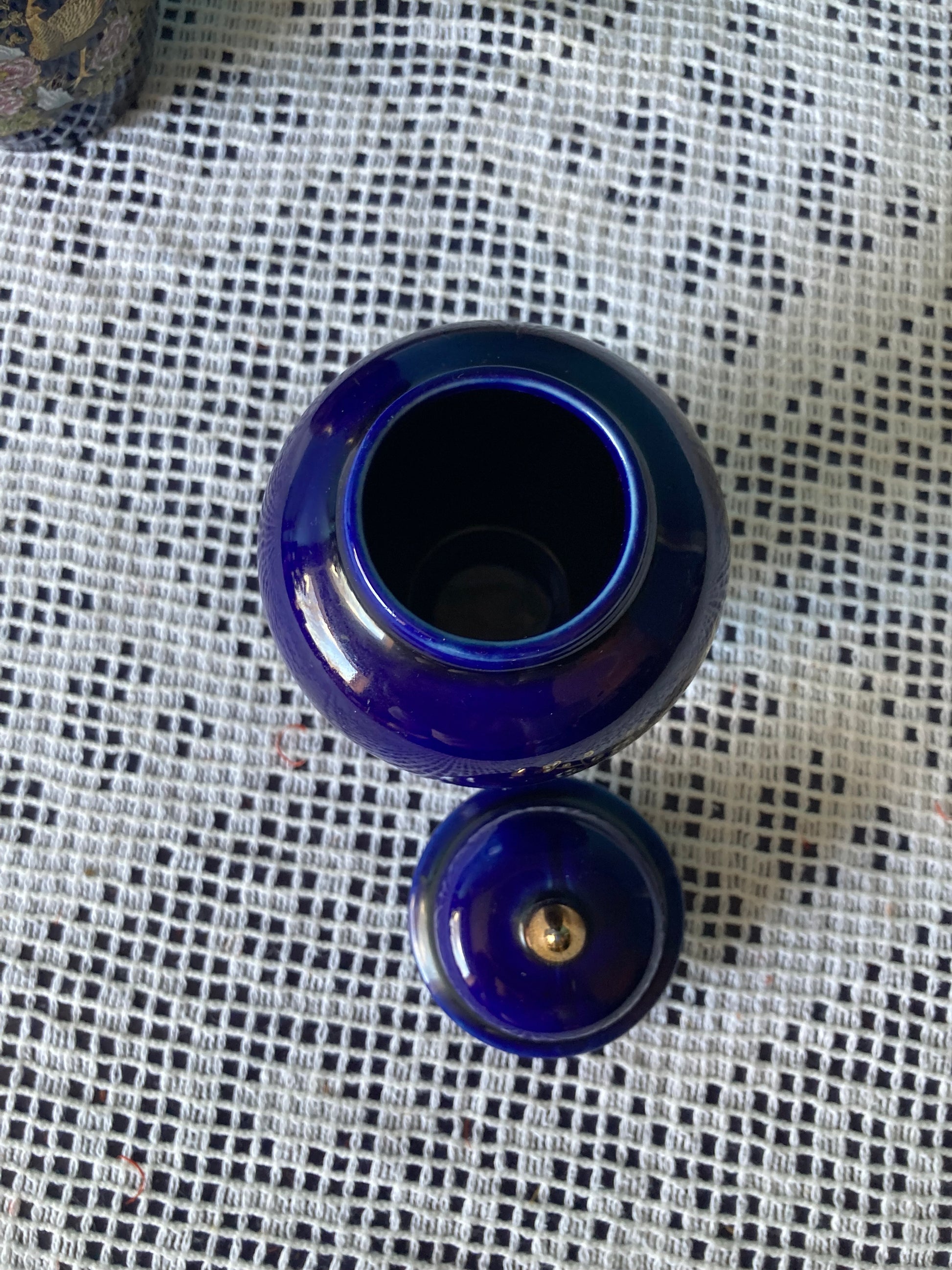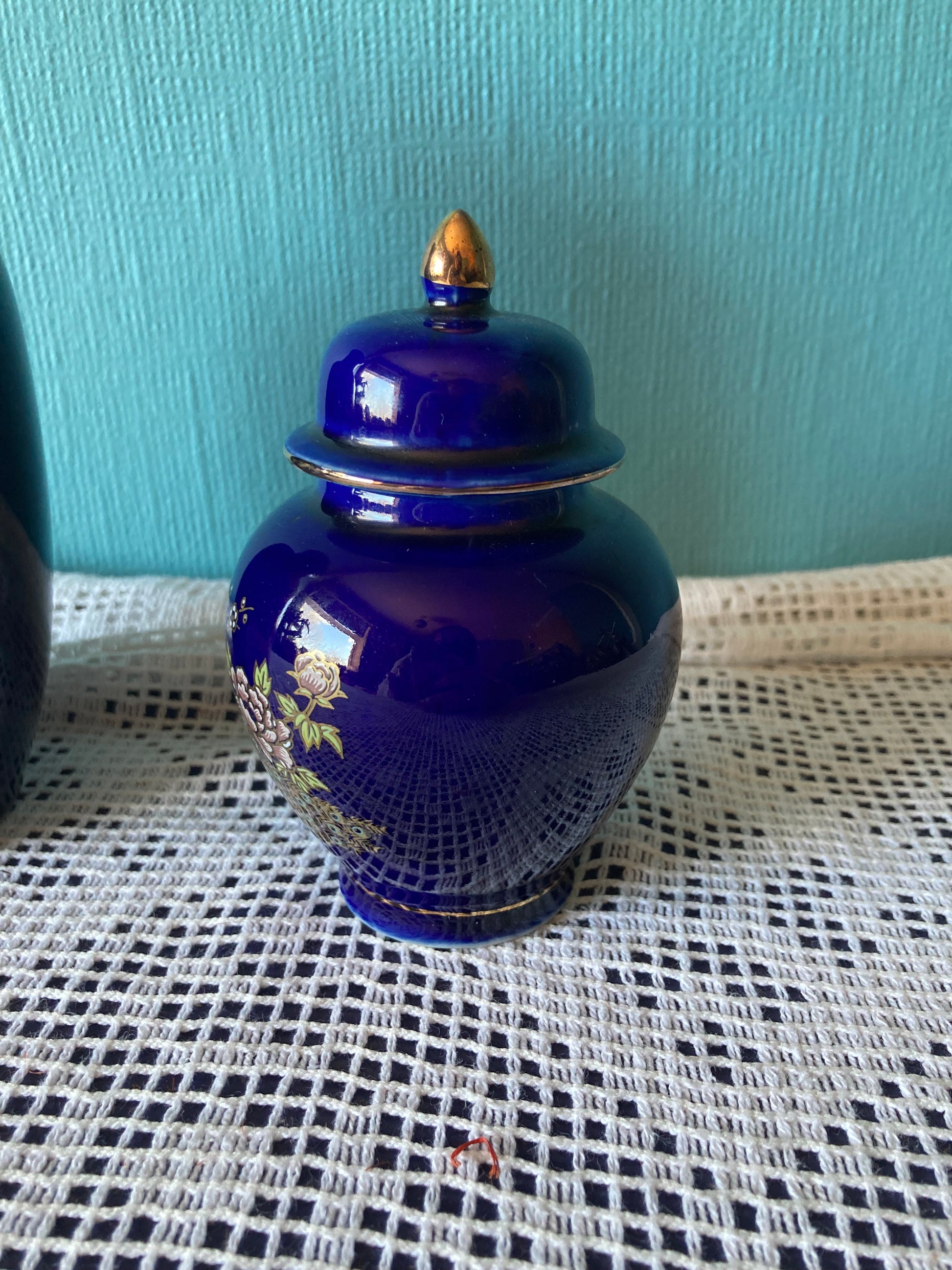 This Kutani Ginger Jar and Vase Set is a stunning example of Japanese Peacock Ceramics.