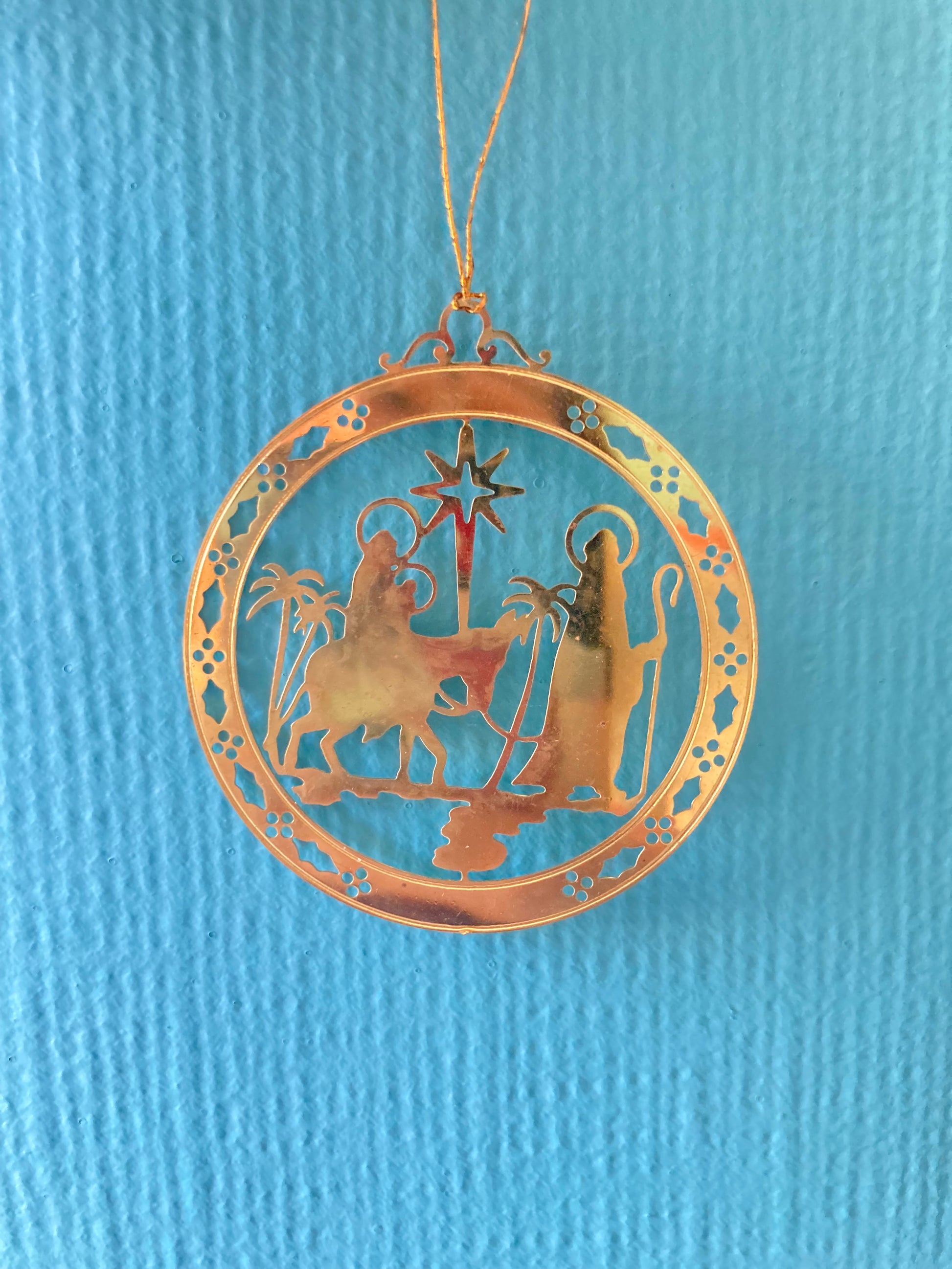 Metal Mary and Joseph Cut Out Bauble Gold Tone