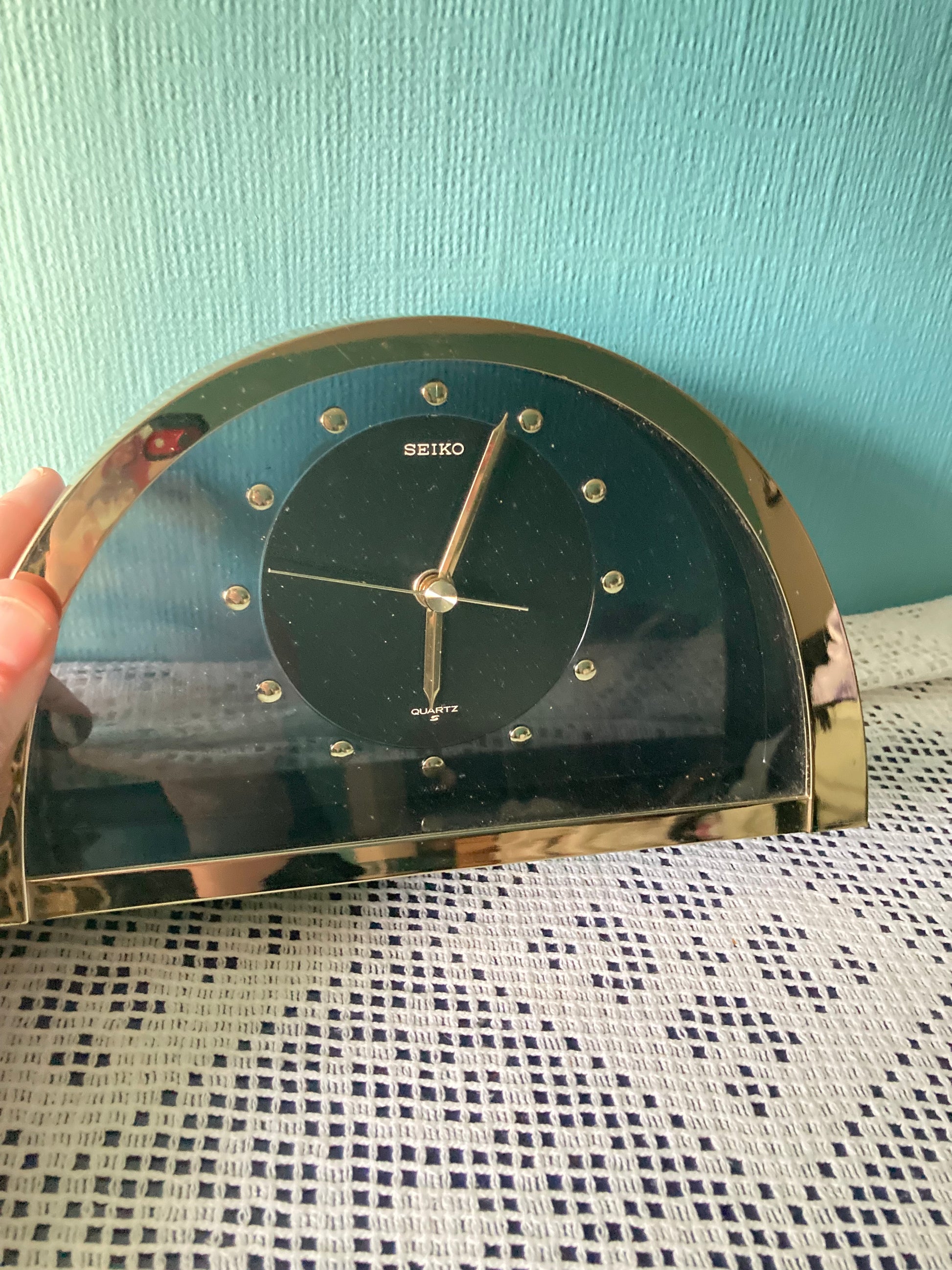 Seiko Half Moon Clock Mid Century Hollywood Regency Brass Table Clock Japan