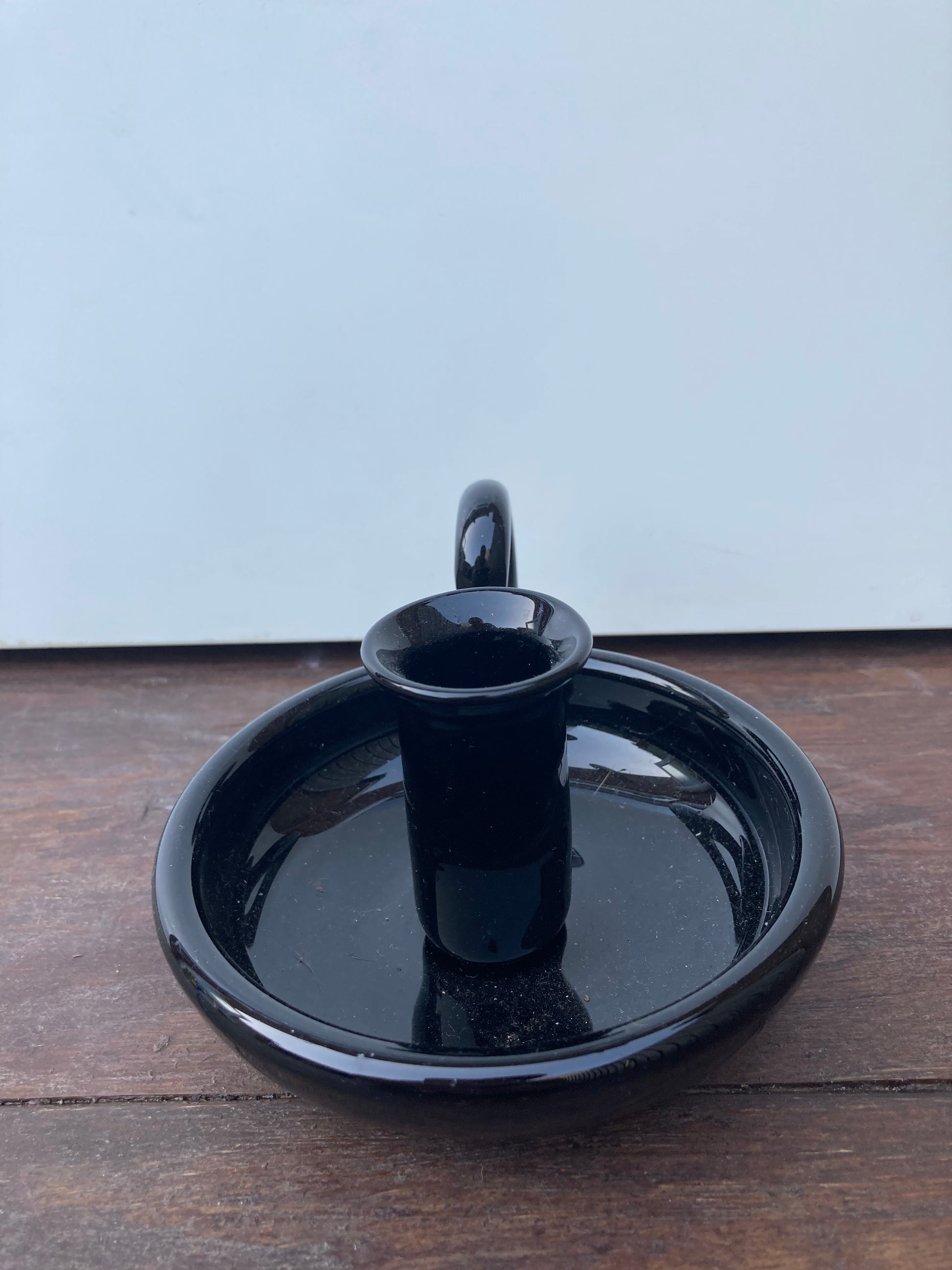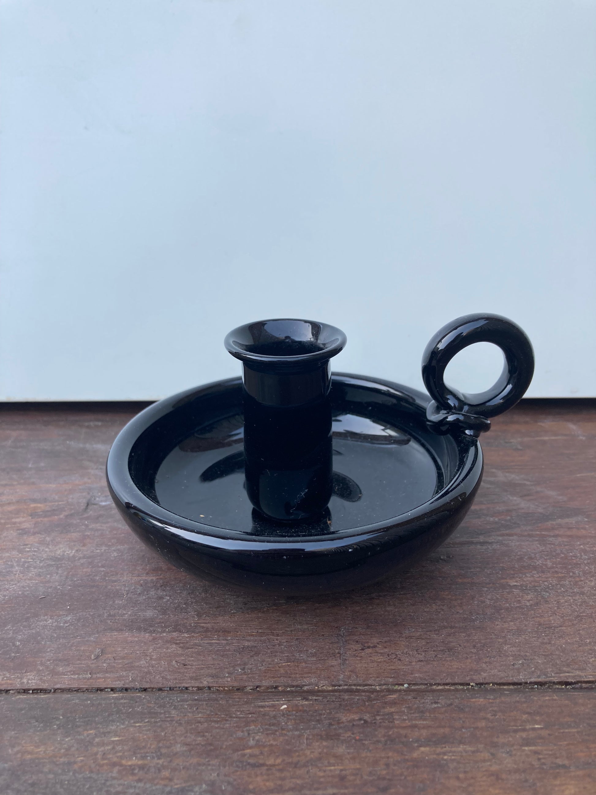 Studio Crafted Black Glass Chamberstick Candle Holder