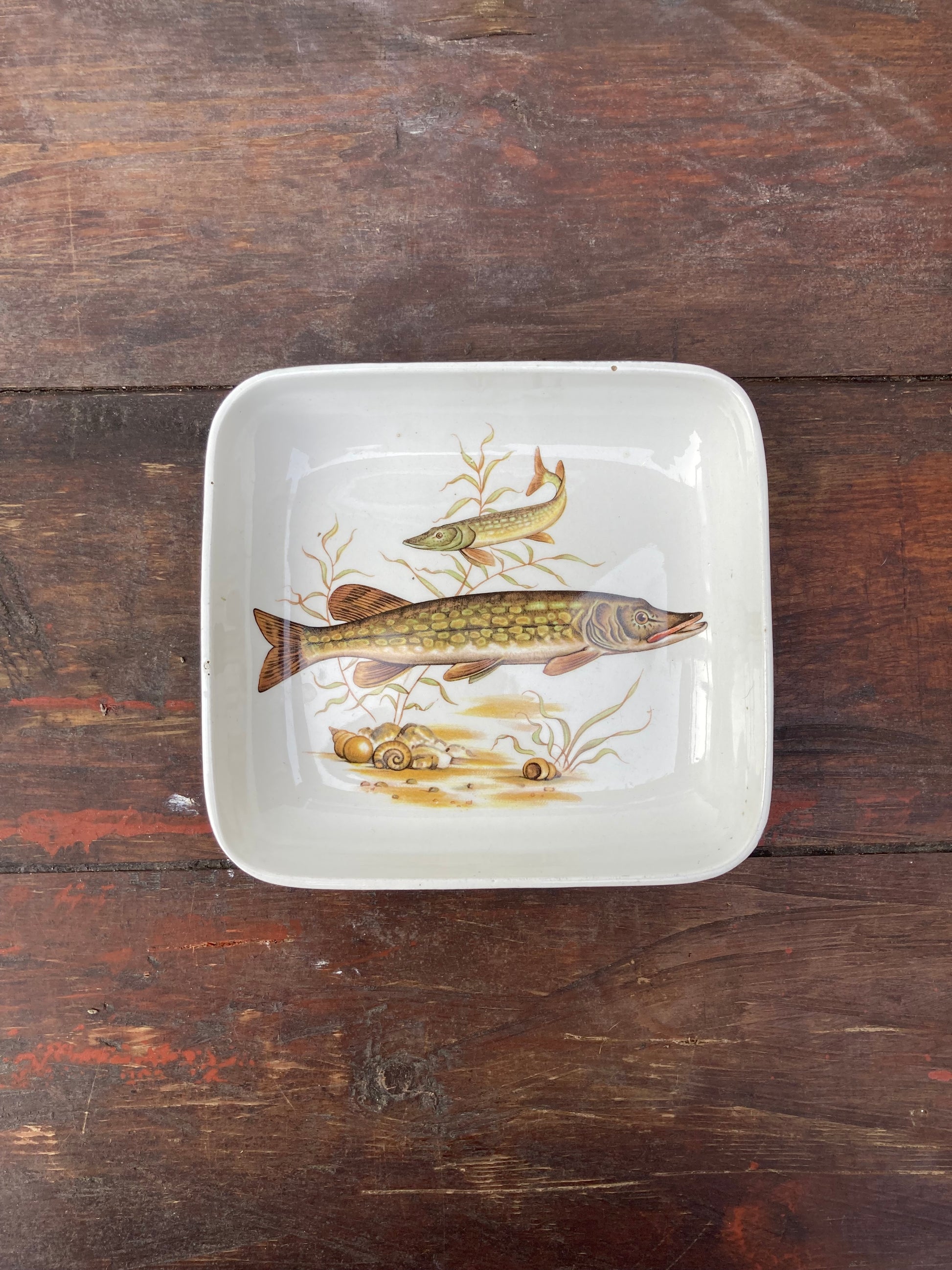 Vintage Pike Fish Themed Small Square Shaped Dish