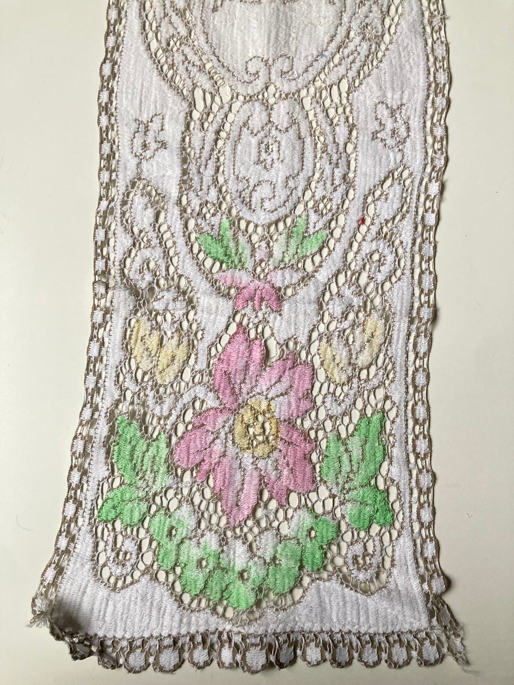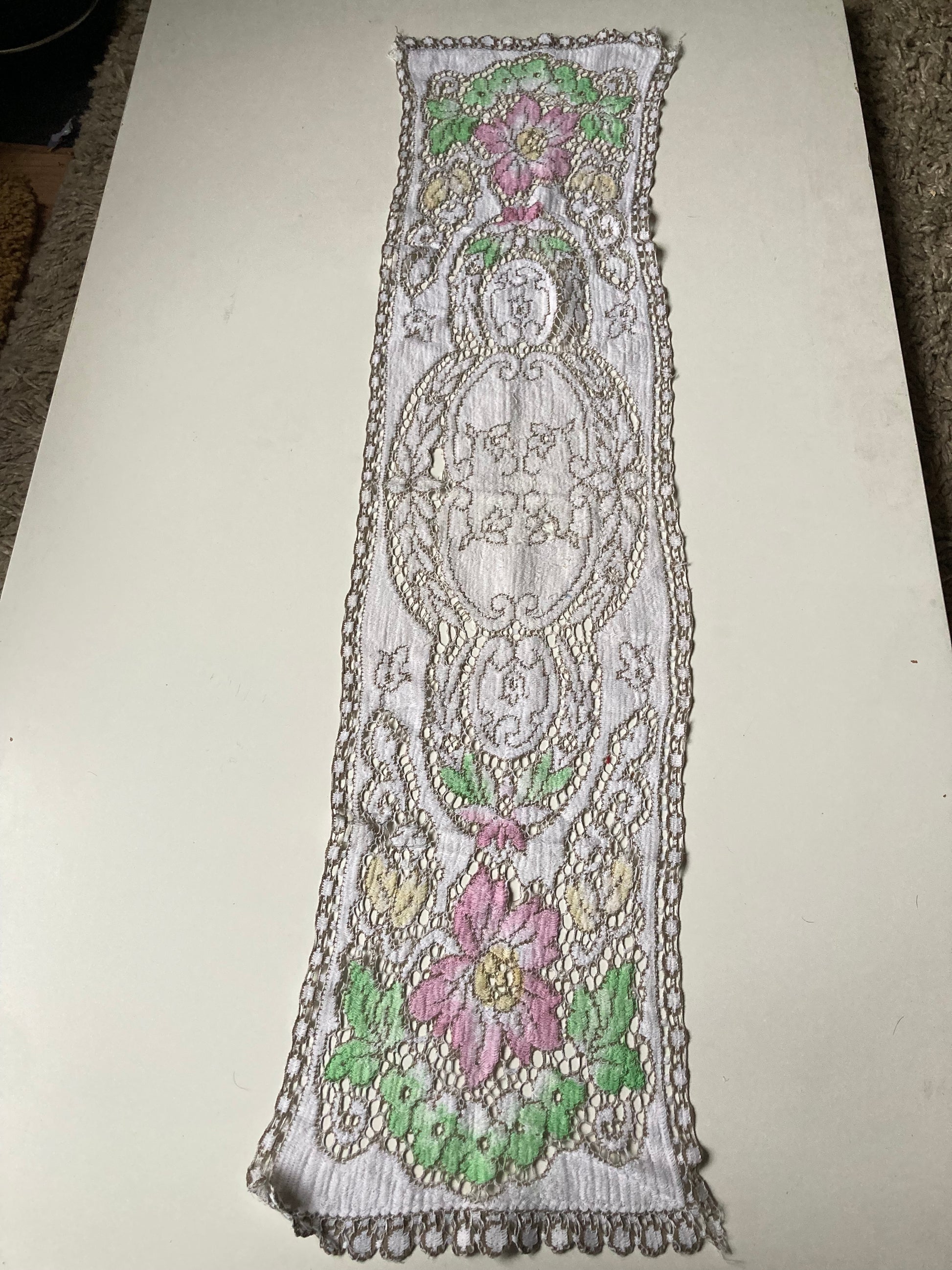 Vintage Cutwork Floral Coloured Lace Table Runner