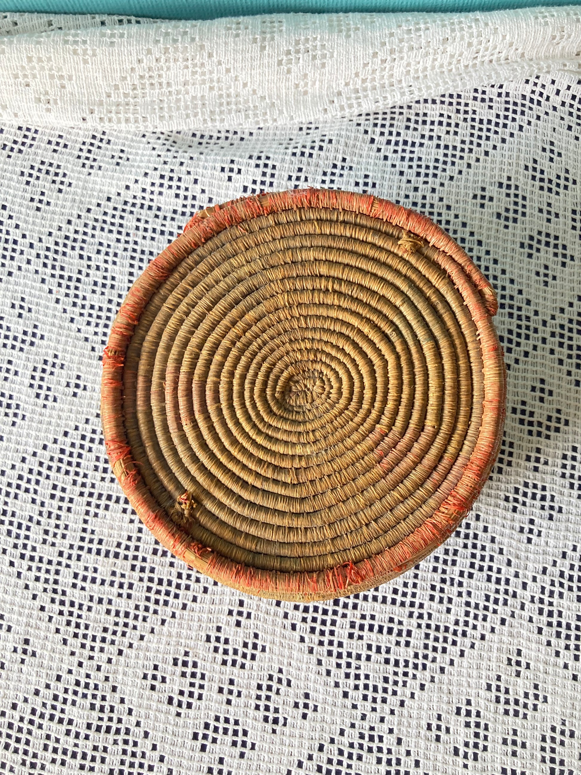 The intricate patterns and natural fibres showcase exceptional craftsmanship, whilst the fitted lid makes it ideal for storage or display.