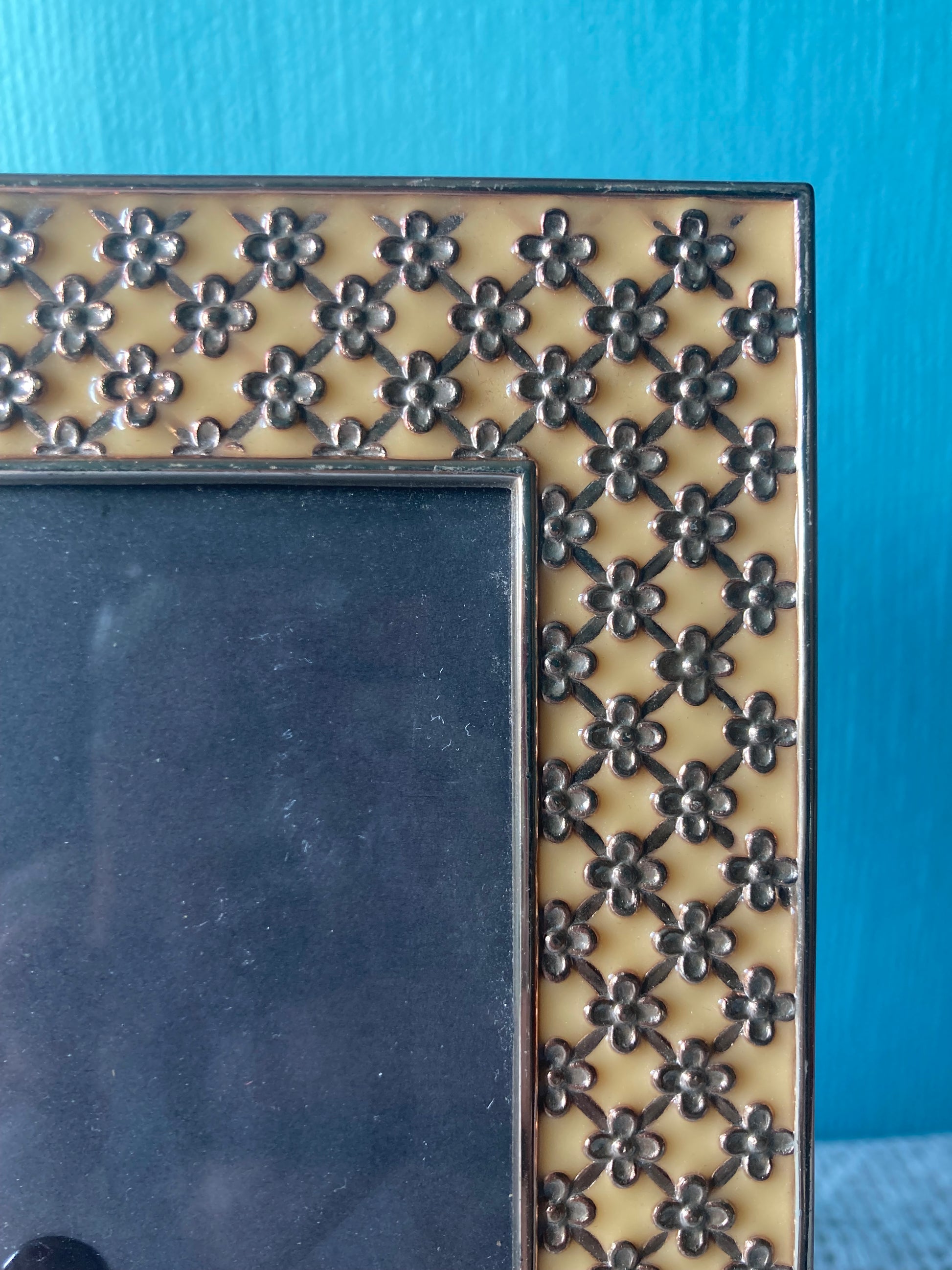 Display your cherished memories in timeless style with this exquisite yellow enamel photo frame.